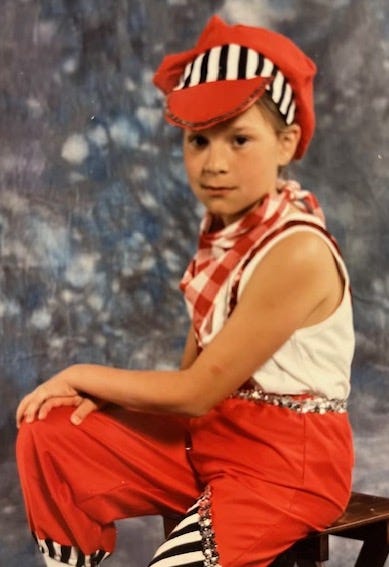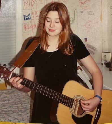 But peel back the many layers of my boudoir robe, and my many trips around the sun and you will still find her: an awkward, timid, and very earnest singer-songwriter, a younger version of me, hiding under all of that tulle.